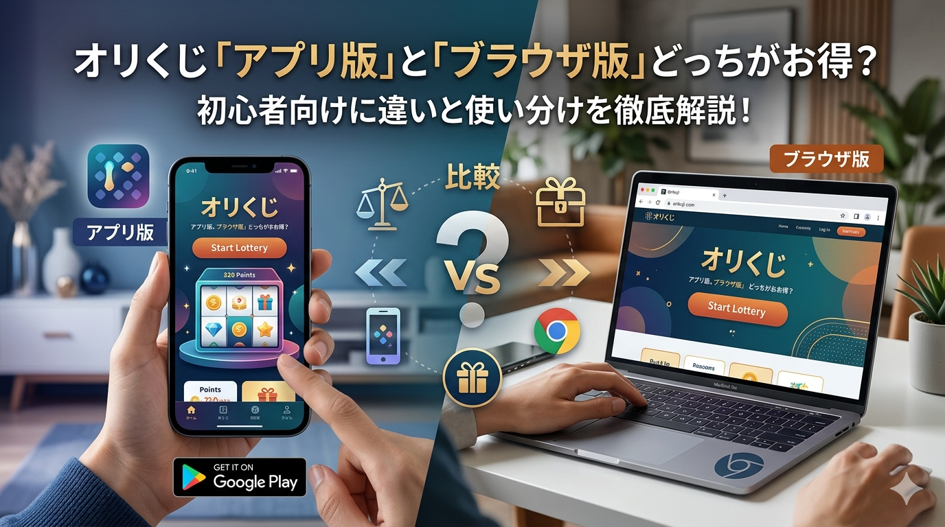 オリくじにはスマホアプリ版とブラウザ版(Web版)の2つの利用方法がありますが、「何が違うの?」「どっちがお得なの?」と迷っている方は少なくないはずです。