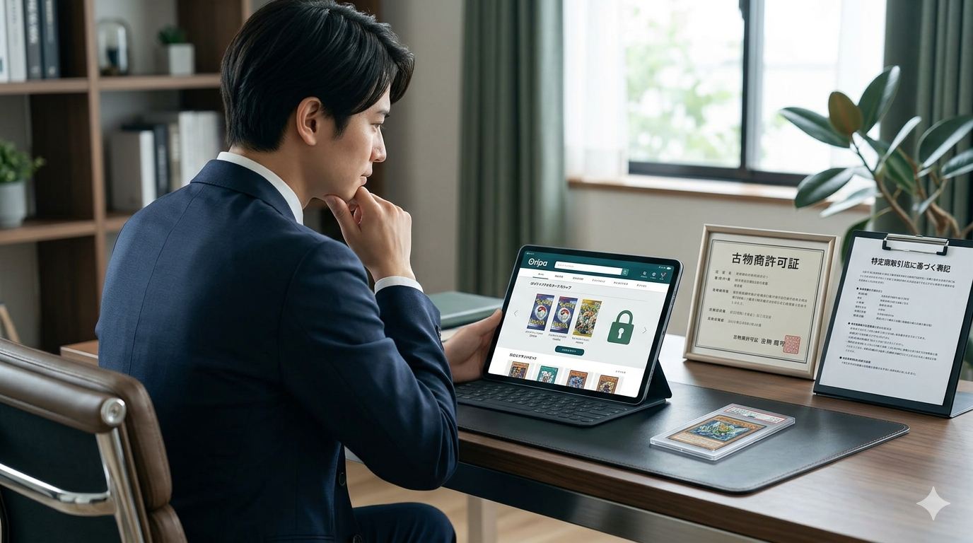 オンラインオリパ市場の拡大に伴い、法令遵守が不十分な業者や、極端に情報が少ないサイトが一部存在するのも事実です。古物商許可を取得せずに営業しているケースや、運営者情報を明かさないケースは法律違反にあたります。こうした悪質なサービスの存在が「オンラインオリパ=怪しい」というイメージにつながっています。しかし、正規に運営されているサービスと悪質業者は明確に見分けることが可能です。