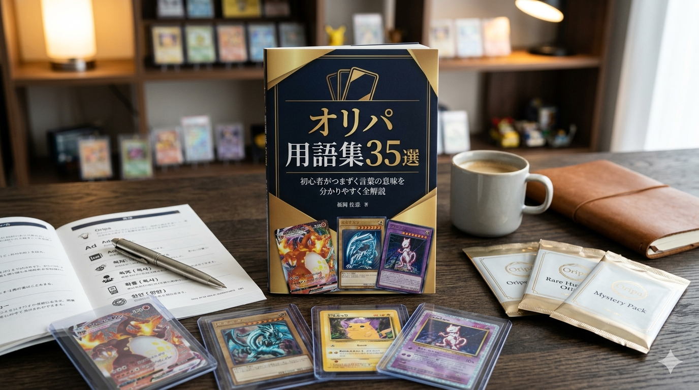 この記事では、オリパの専門用語を「損益」「仕組み・確率」「パック種類」「カード状態・鑑定」「オンラインオリパ特有」「不正・リスク」の6カテゴリに分けて解説します。2026年4月時点の情報です。